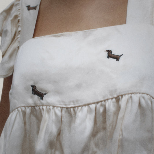 SET PJ SALCHICHA PANTALÓN + BLUSA ARANDELA IVORY