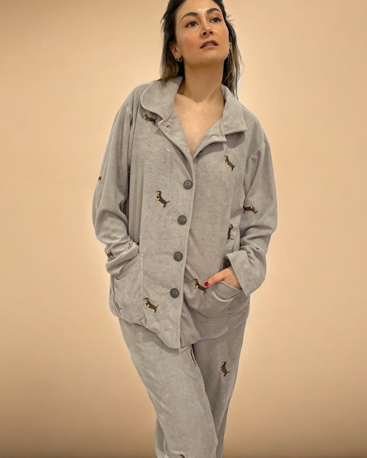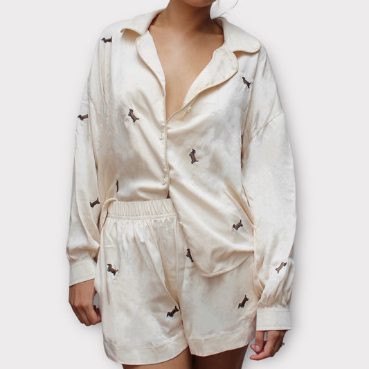 SET PJ SALCHICHA CREMA SHORT FUNCIDO + CAMISA