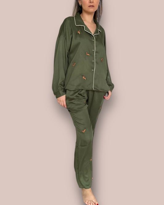 SET PJ PANTALON + CAMISA SALCHICHA VERDE OLIVA