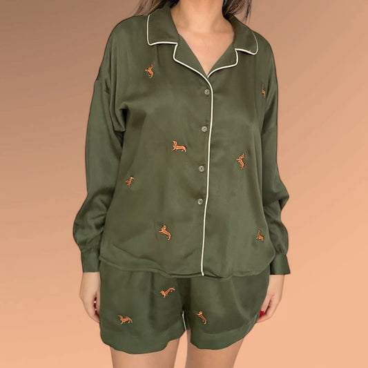 SET PJ SALCHICHA VERDE OLIVA SHORT + CAMISA